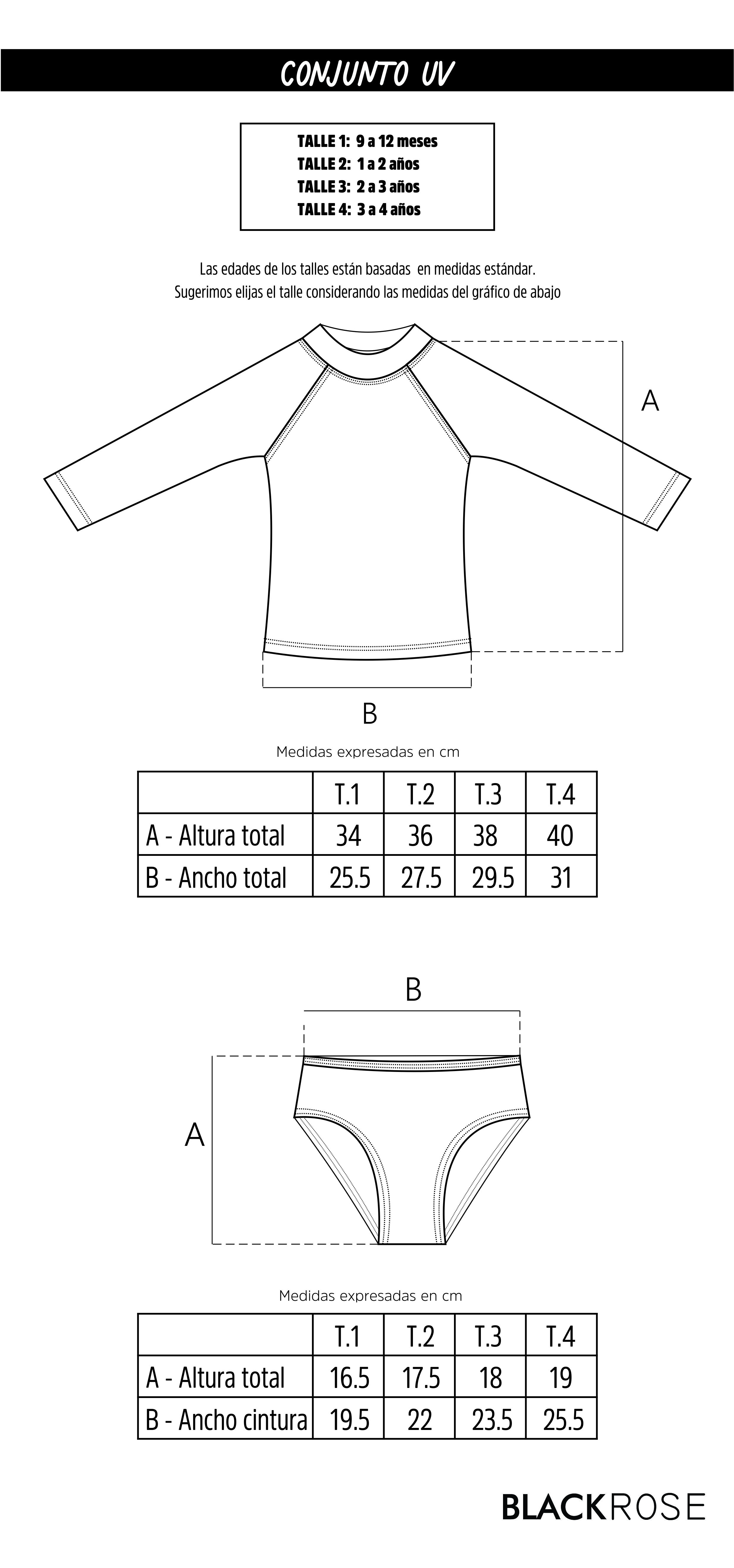 Guía de talles: Podés utilizarla para comparar con las medidas de alguna prenda de tu peque.